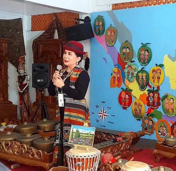 Tentang peranan perempuan dalam perkembangan seni-budaya di Indonesia, ia mengatakan bahwa peranan perempuan bagi perkembangan seni-budaya Indonesia sesungguhnya strategis dan tidak dapat dianggap remeh. Menurutnya, di belakang para tokoh senibudaya, ada peran perempuan sebagai pendamping yang memberi dukungan bahkan dijadikan objek inspirasi. Seiring semakin berkembangnya emansipasi, banyak bermunculan tokoh seni budaya dari kalangan perempuan. Ini adalah sebuah kemajuan yang harus diviralkan kepada perempuan-perempuan lainnya, sebab dalam seni-budaya terkandung makna mendalam yang dapat menjadi sebuah terapi. Sebagai perempuan yang menyandang kata ibu dan berdiri di garda depan untuk mencetak anak-anak yang berperilaku sopan-santun, hormat dan hidup bahagia, seharusnya perempuan mengambil peran dengan menjadikan seni-budaya sebagai konsumsi anak-anaknya karena semua itu bisa didapat dari seni-budaya yang telah ada sejak zaman nenek moyang.
